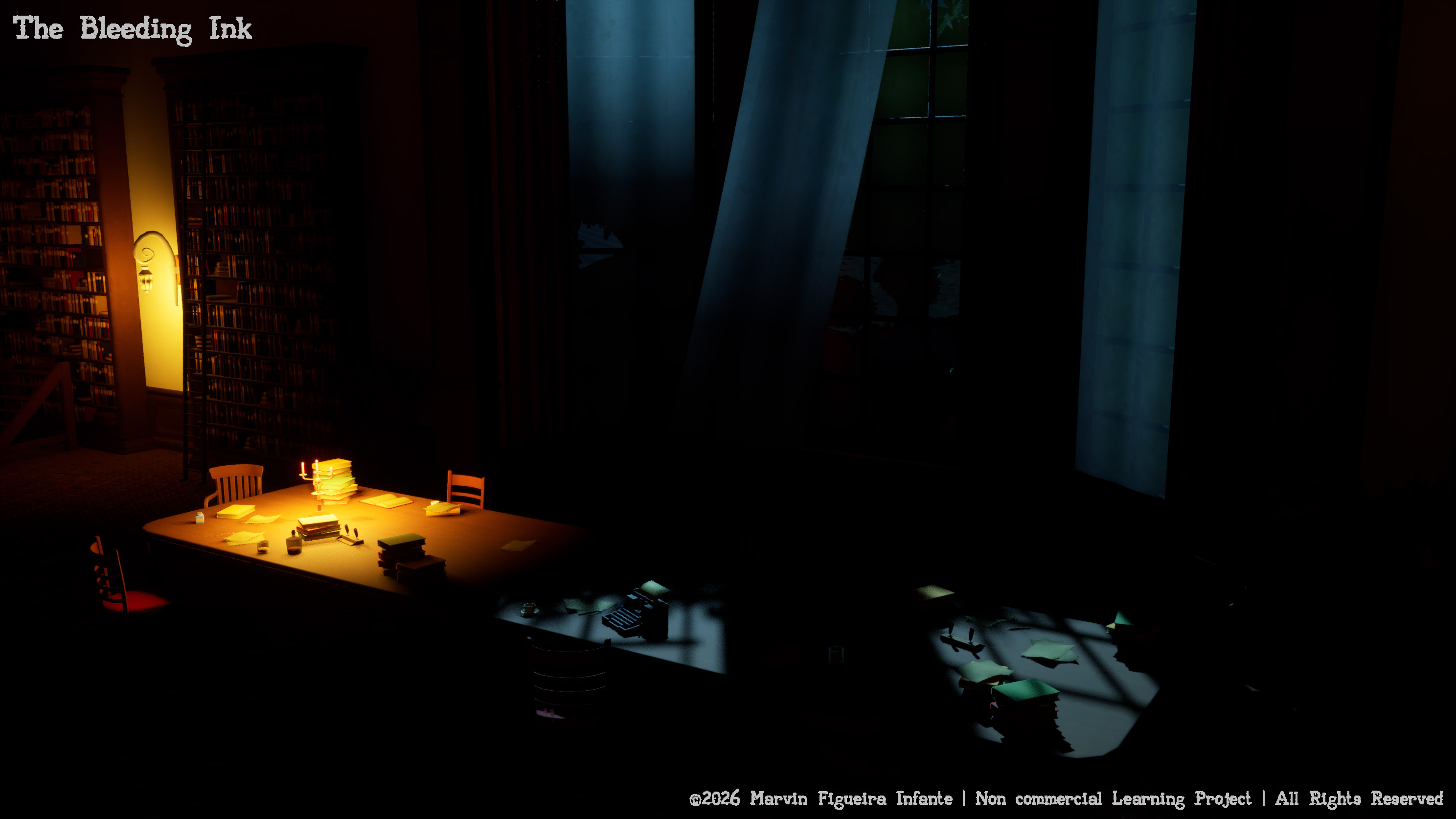 The Bleeding Ink is an atmospheric short-form experience centered entirely on environmental storytelling.